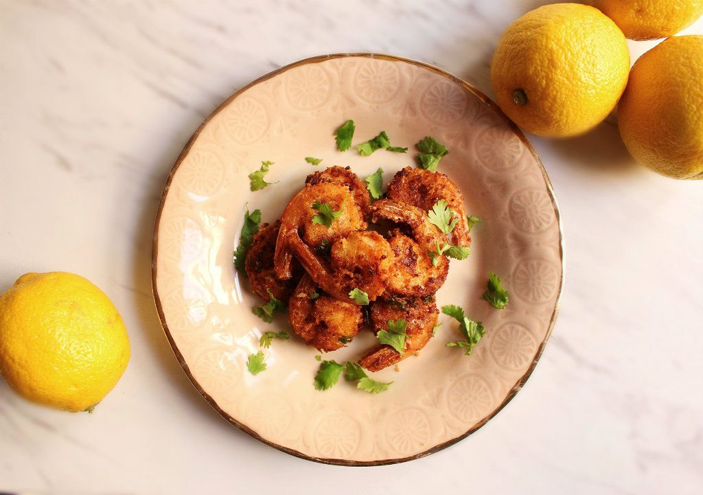 Set the cooked shrimp on a paper towel to remove the excess oil. Serve immediately with a wedge of lemon for squeezing!