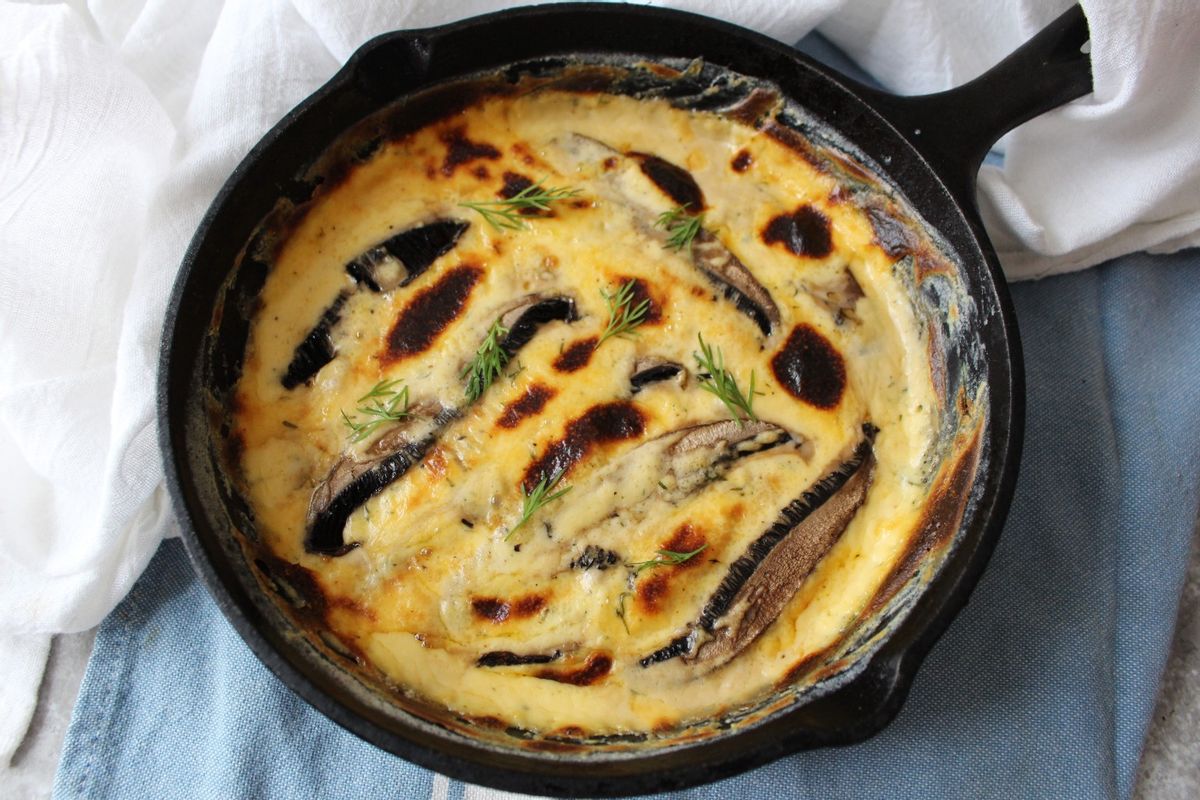 What starts as a side dish turns into a genius addition to a vegetarian meal. Meaty portabella slices are served in a piping hot skillet full of bubbling cheddar cheese sauce. You can turn this into a meal by serving over zucchini noodles, spaghetti squash, or cauliflower rice. There’s enough cheese sauce to lay thick on your plate!