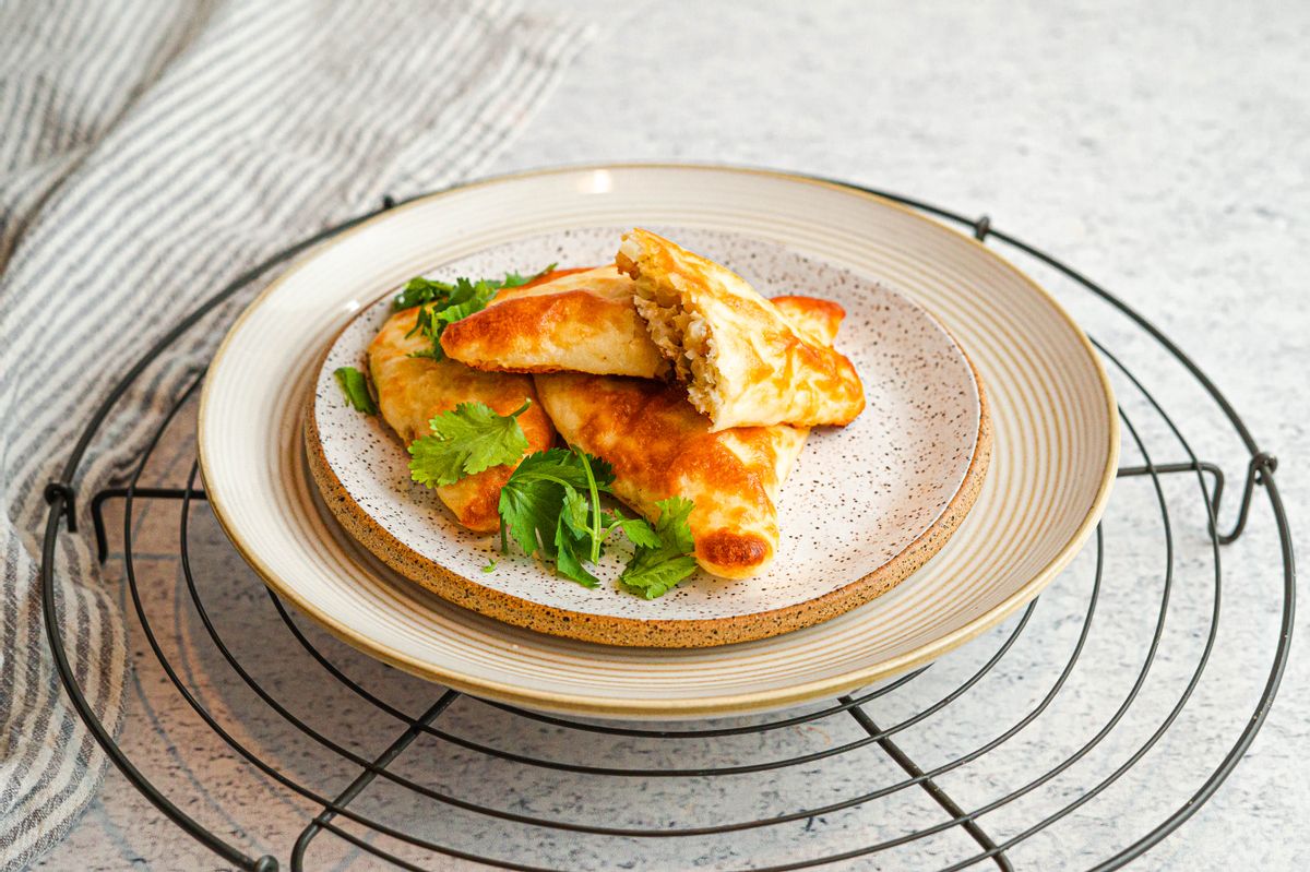 For the ultimate Keto Indian food experience - look no further than these delicious low-carb samosas. Samosas are quintessential to Indian cuisine, so we have made a low carb adaptation using a Keto fathead dough. The fathead dough is shaped into triangles around a low carb filling made of a spiced cauliflower mixture. The cauliflower mixture is made by sauteing onions together with cauliflower rice which is seasoned with warm Indian spices like garam masala, fresh ginger root, ground coriander, ground cumin, and red chili flakes. Once the mixture is cooked, a sprinkling of freshly chopped cilantro is added to the mix. The filling is then wrapped up in the Keto fathead dough and baked until golden brown and delicious.