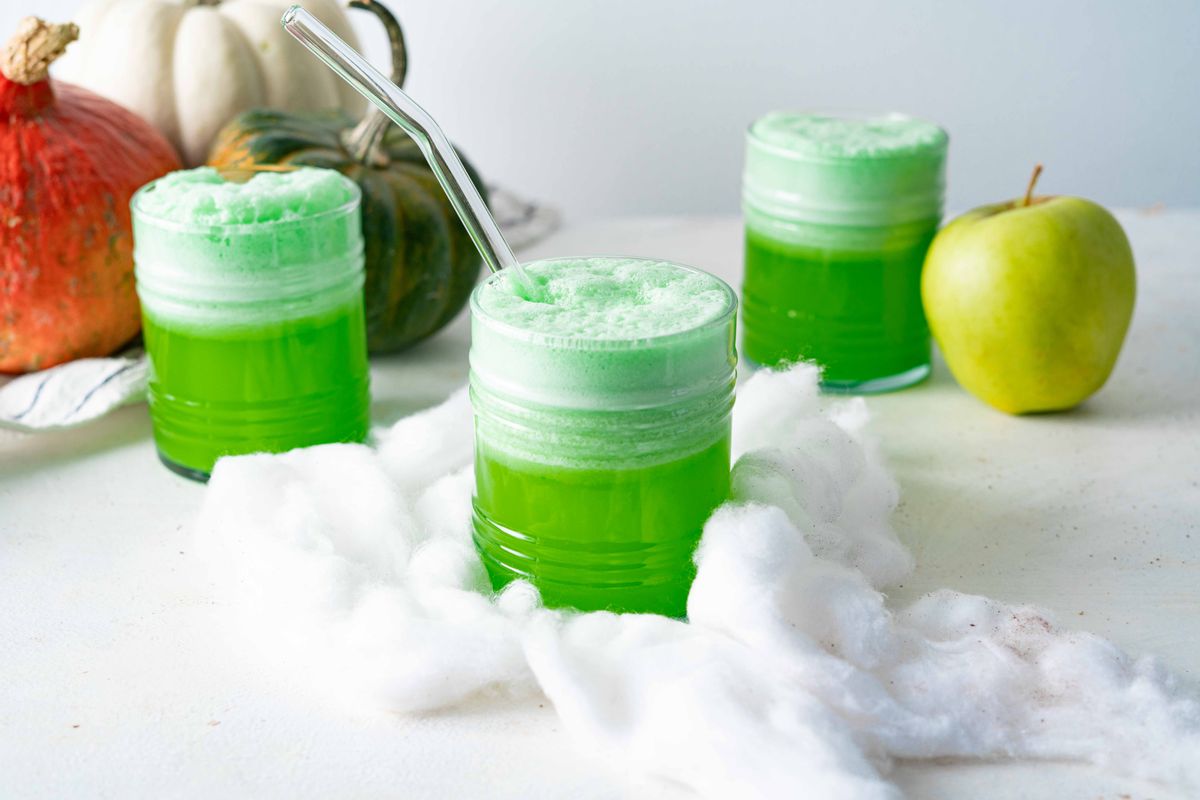 If serving this green drink isn’t Halloween-y enough for you, there are a couple of things you can do: