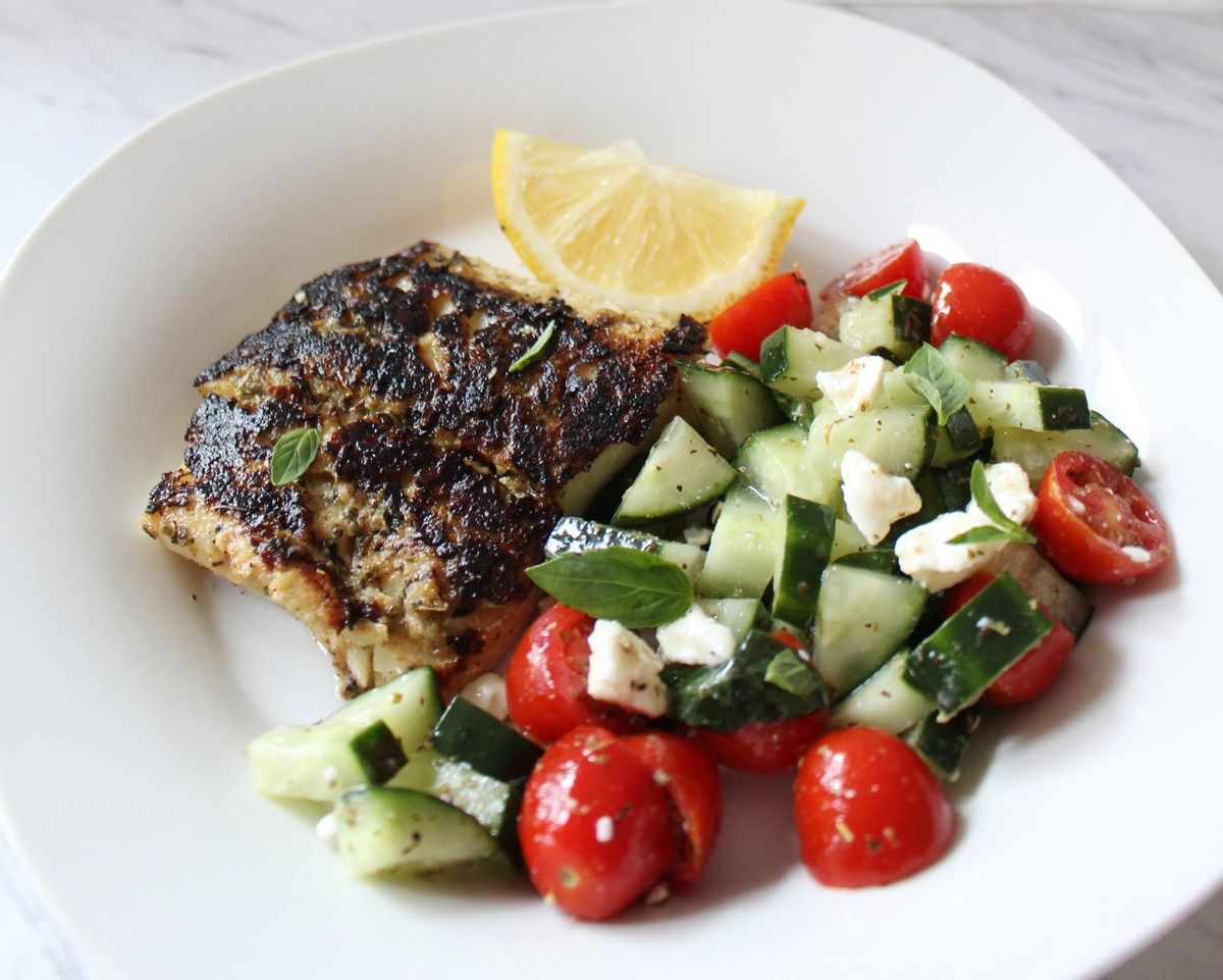 Keto Blackened Cod w Mediterranean Side Salad