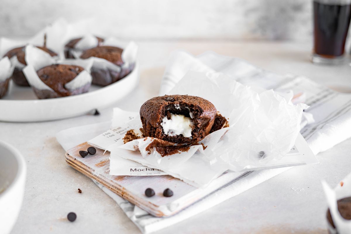 Whether you are looking for a treat to satisfy your sweet tooth or something other than a cup of coffee to wake you up, then these chocolate espresso mini-muffins are the answer. These Keto coffee cakes are rich, decadent, and oozing with a creamy center. The muffins explode with flavors of coffee and chocolate, which pair perfectly together. To cut through the intensity, these muffins are filled with a whipped cream cheese frosting that takes this recipe to another level.