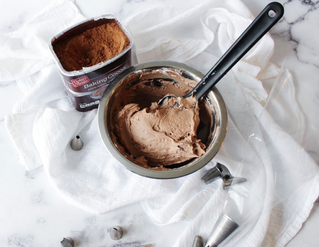 This chocolate cocoa frosting can be stored in your refrigerator for up to 48 hours, as long as it’s kept in airtight storage. To keep the frosting as fresh as possible, return any unused frosting to a stand mixer before you use it. Whip the frosting until it returns to its smooth and creamy consistency before decorating with it.