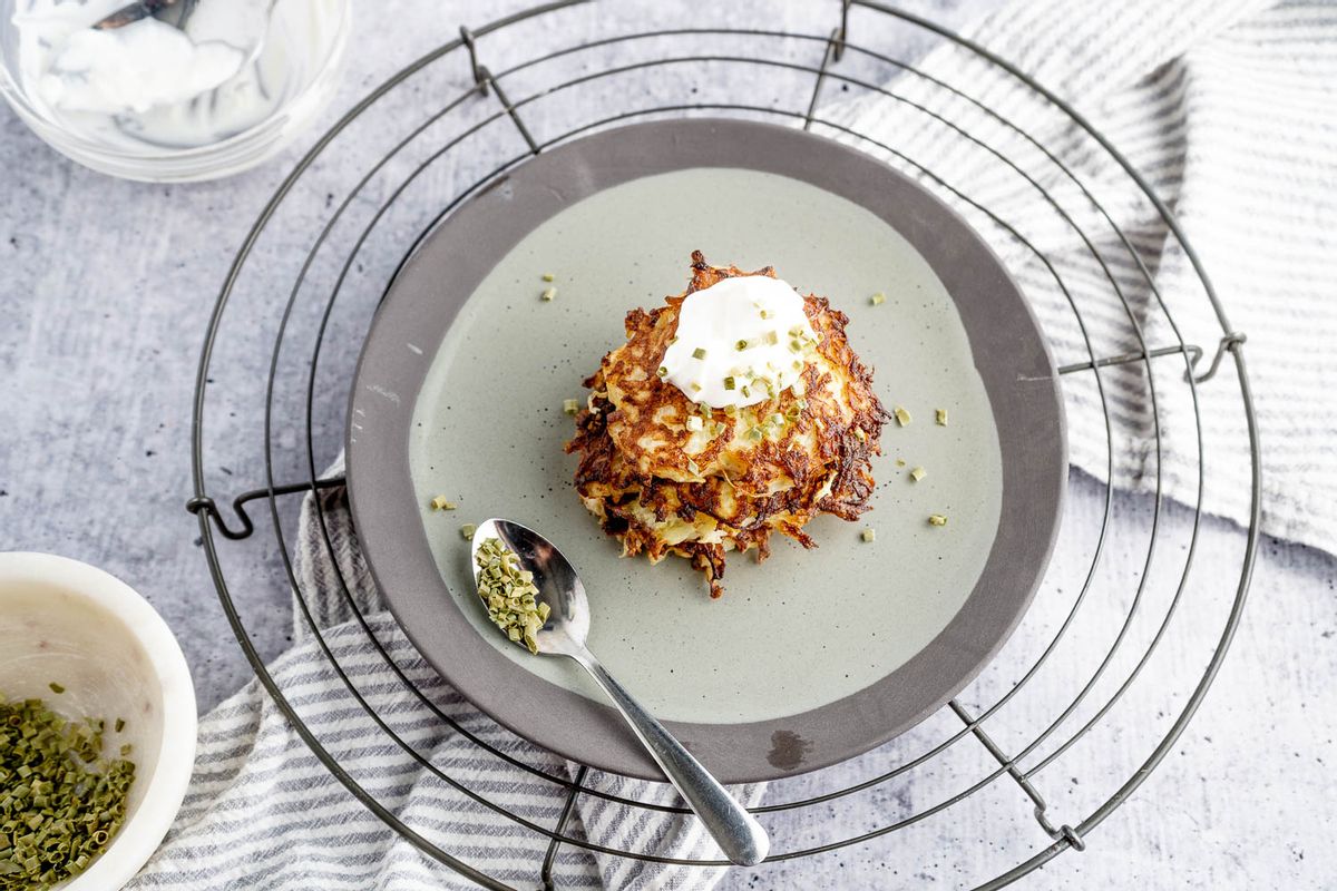 To help add more fats to your diet, you can add a large dollop of sour cream or full-fat yogurt can be added on top of the hash browns with a sprinkling of fresh herbs. Feel free to add a sunny-side-up egg for added protein.