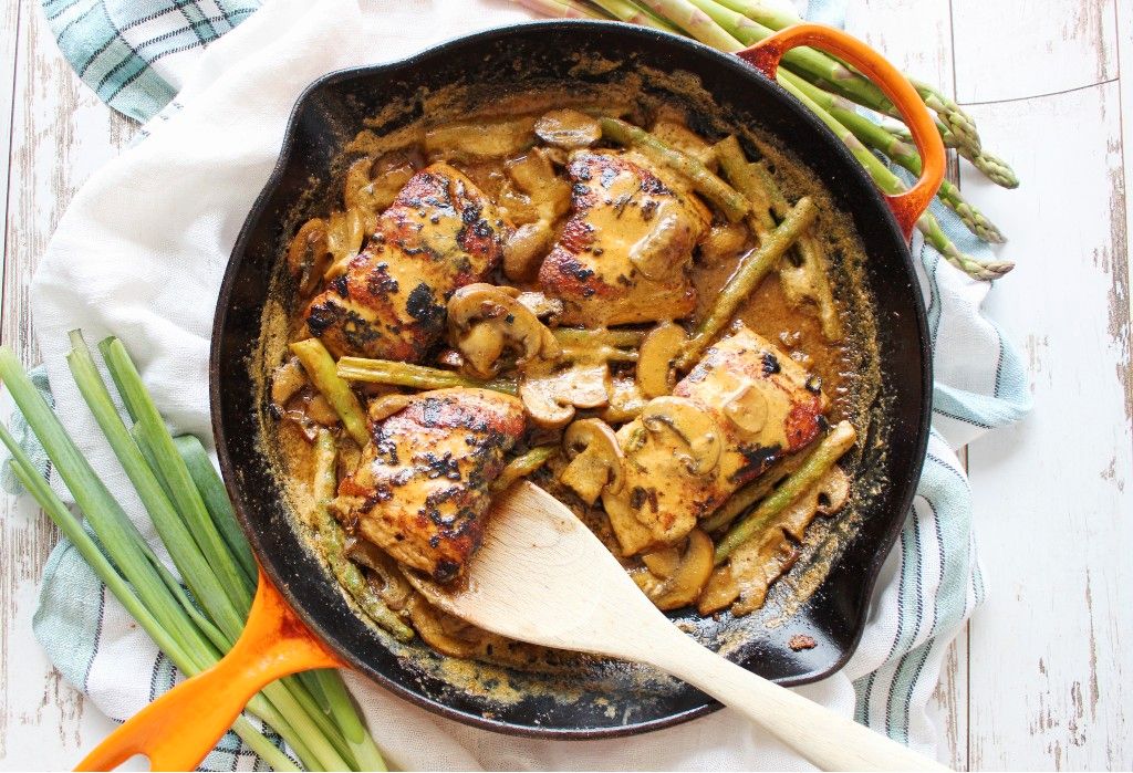 You’ll really enjoy making this low sodium Keto salmon recipe for a family or your weekly meal prep. You won’t even notice that there’s little to no salt in the recipe because it’s so flavorful! This all-in-one meal is made in one skillet. Fresh salmon fillets are cooked with the skin on along with a buttery dijon marinade. The rest of the skillet is filled with mushrooms and asparagus as well as a thick seasoned cream. If meal prepped, this recipe makes a great lunch, but it also makes a beautiful centerpiece at the dinner table to be served family-style.
