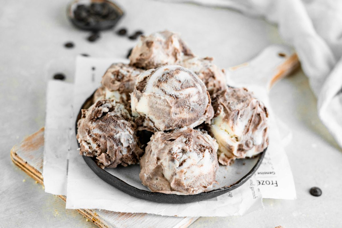 First, combine the butter and cream cheese with the powdered sweetener and vanilla extract. It is important that the butter and cream cheese are at room temperature to yield smooth fat bombs. Scoop out half of the mixture into another bowl and mix in the coffee and cocoa powder. Add the mocha mixture to the initial bowl and gently swirl both mixtures together. Freeze the mixture for a bit, then scoop out small balls and place them on a tray or plate lined with parchment paper. Let them set further in the freezer. Once they are solid enough, store them in an airtight container in the fridge or freezer.