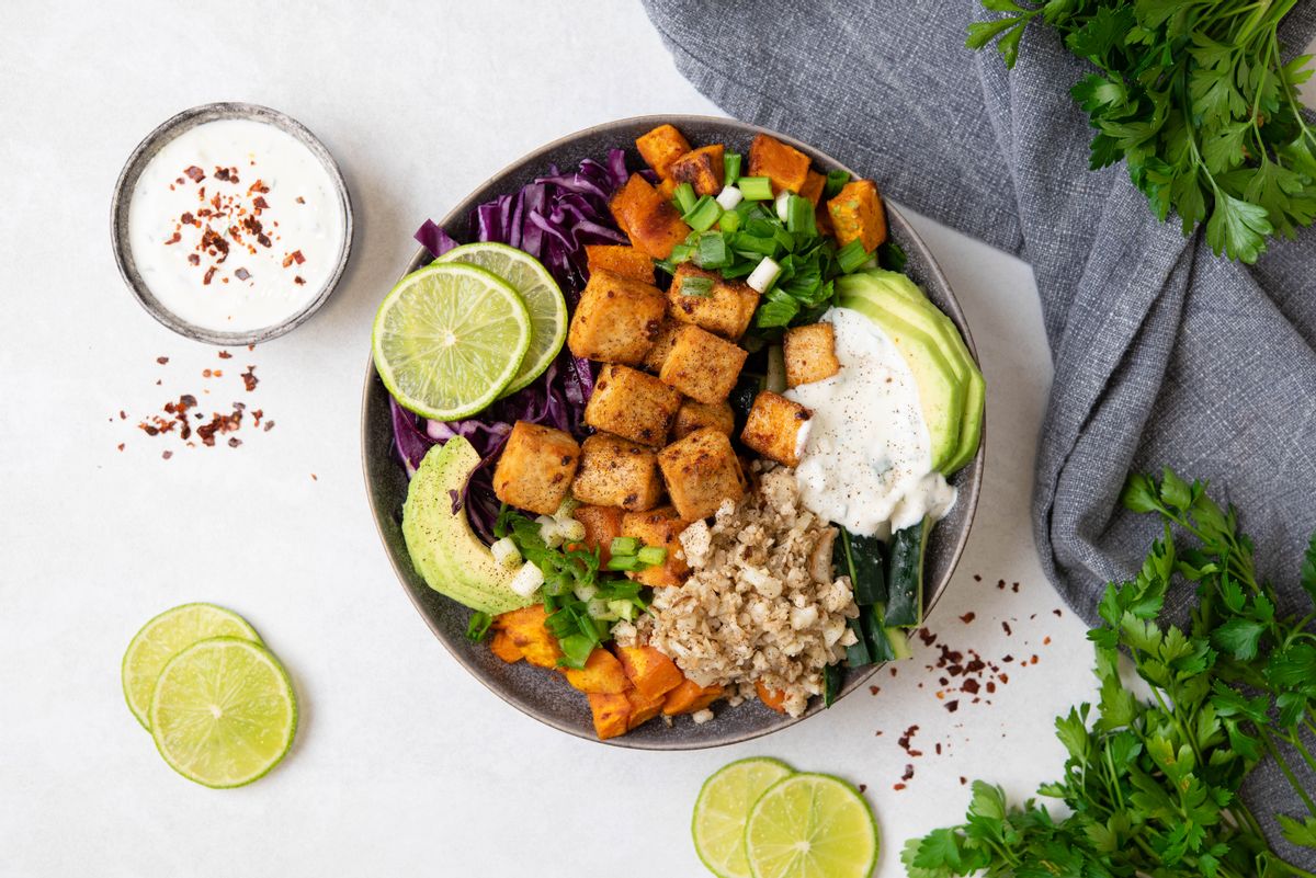 This fantastic tofu power bowl is perfect If you're looking for some low-carb fall recipes that will boost your energy and give your body all the essential nutrients. This colorful bowl is healthy and filling – a perfect meal for the entire family. If you wish to avoid dairy products, you can easily substitute the yogurt dressing with your favorite dairy-free low-carb dressing or simply serve the bowl with a good drizzle of olive oil and some lime juice. Serve immediately or store for later. Enjoy!