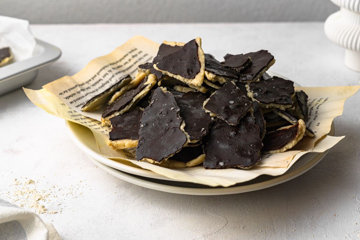 Melt chocolate chips and spread evenly over the top of the mixture. Top with some coarse sea salt.Step 3