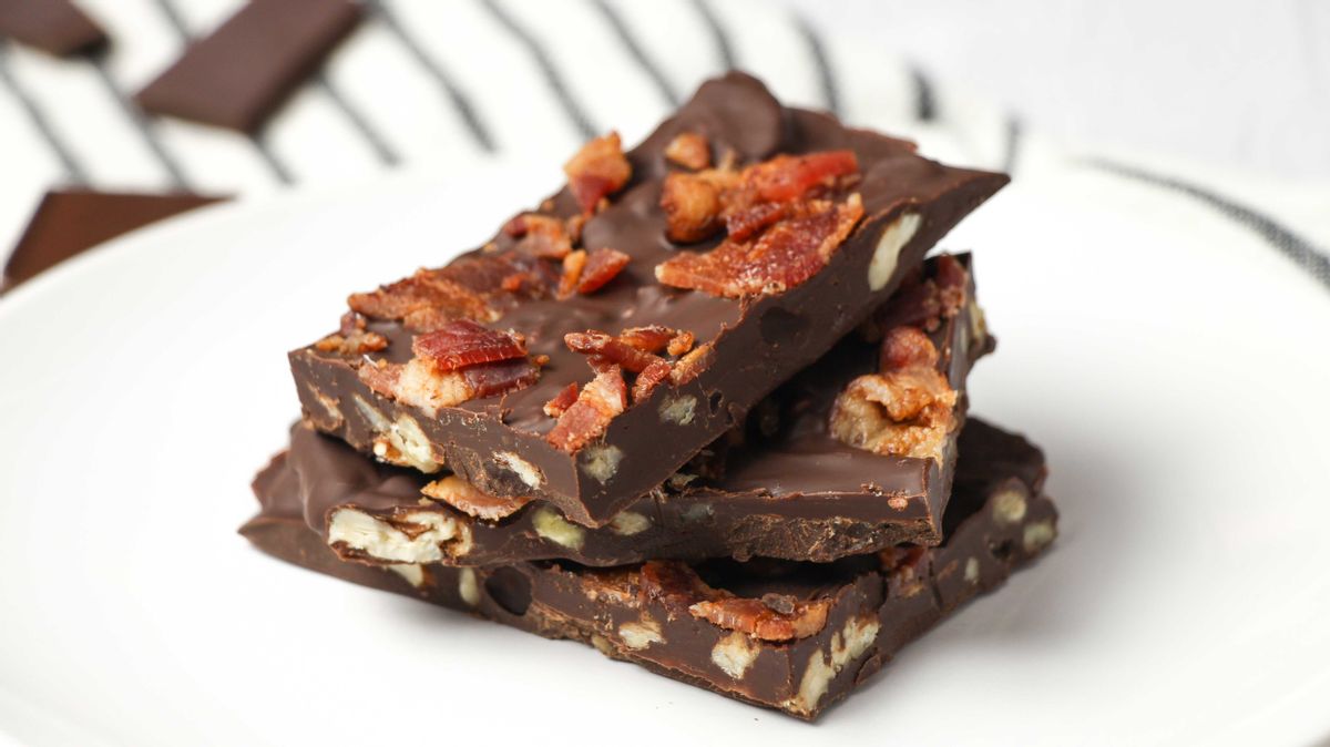 This simple chocolate bark is loaded with candied pecans and complemented by salty bacon.