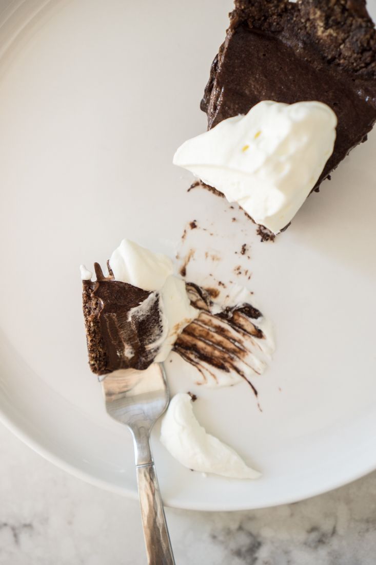 Whisk until mixture thickens then pour on top of the ganache and smooth. Place pie in the fridge until completely chilled.Step 11