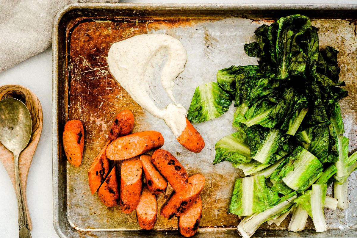 Keto Charred Romaine With Spicy Andouille Sausage And Whole Grain Mustard Aioli