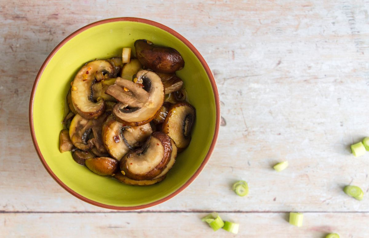 These sautéed mushrooms are cooked until tender with aromatic scallions and garlic then coated in a sweet and spicy sauce of dried chill, sweet lakanto syrup and salty tamari.