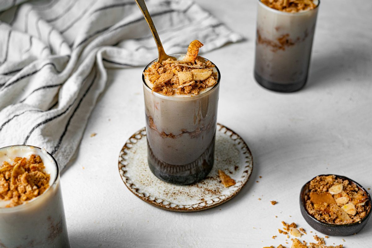 Indulge your sweet tooth in this creamy parfait topped with a crispy coconut crumb. This dessert is the ultimate AIP version of a banana cream pie, but the components are layered in small cups. The recipe is prepared using AIP-compliant ingredients, resulting in a decadent dessert that will have you hooked.